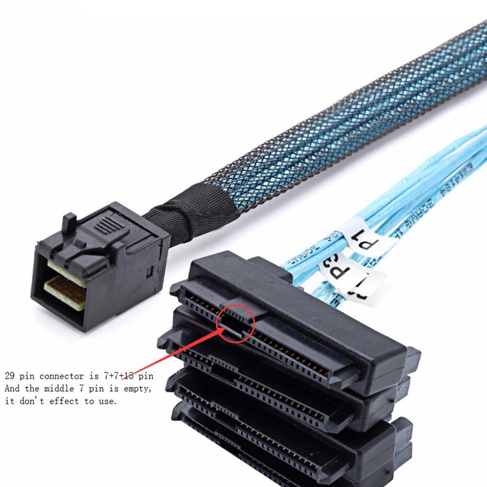 Please note that Mini SAS (SFF-8643) is host, 4 SAS 29 (SFF-8482) is target, internal Mini Serial Attached SCSI x4 (SFF-8643) to (4) x1 (SFF-8482) Serial Attached SCSI (controller based) fan-out cables